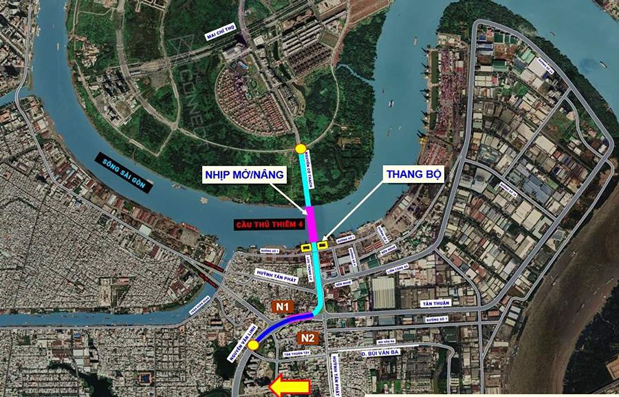 Tổng quan quy mô cầu Thủ Thiêm 4 và hướng tuyến kết nối