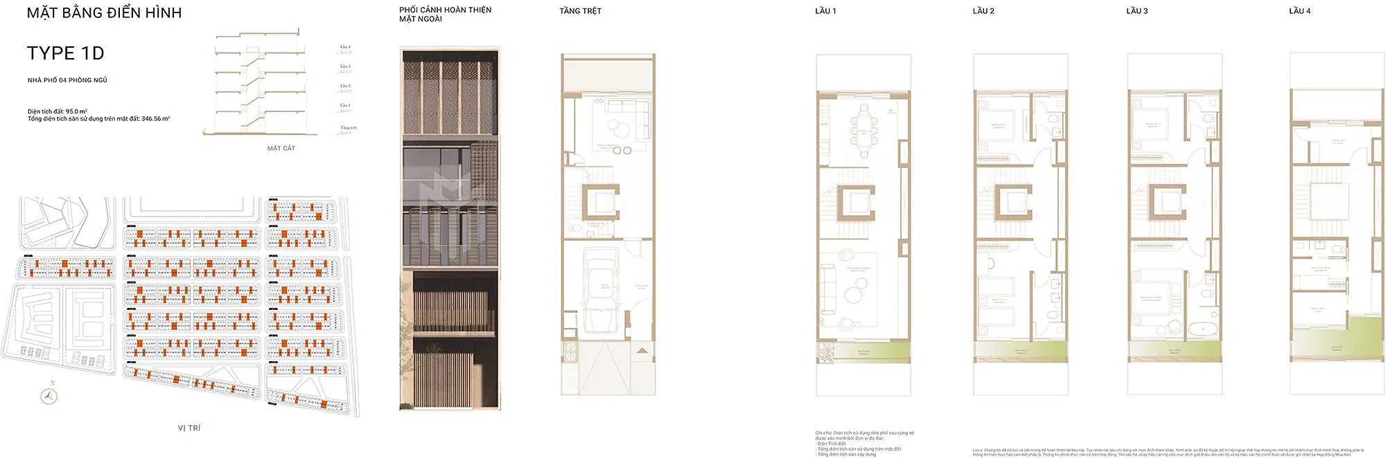 - 1D: Thiết kế độc đáo với lớp facade che nắng → phù hợp mô hình cao cấp, boutique