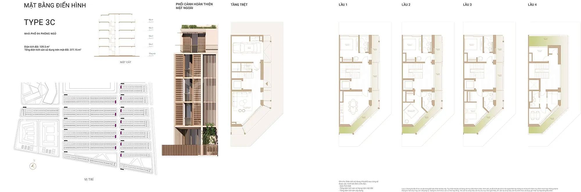 - Type 3A – 3B – 3C – 3D: diện tích ~139 – 140m²