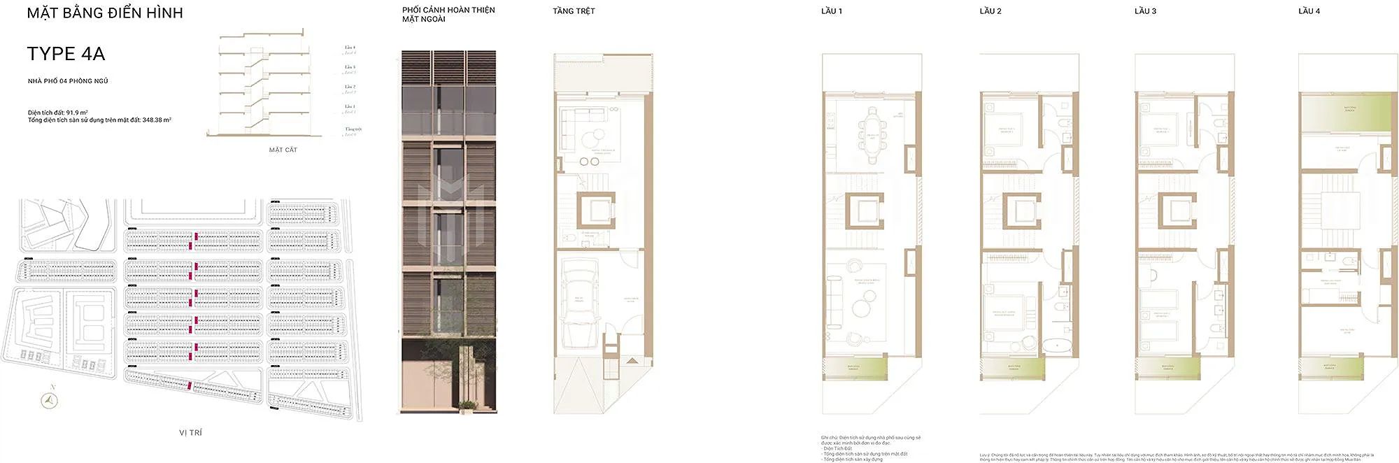 - Type 4A – 4B: diện tích ~91.9m²