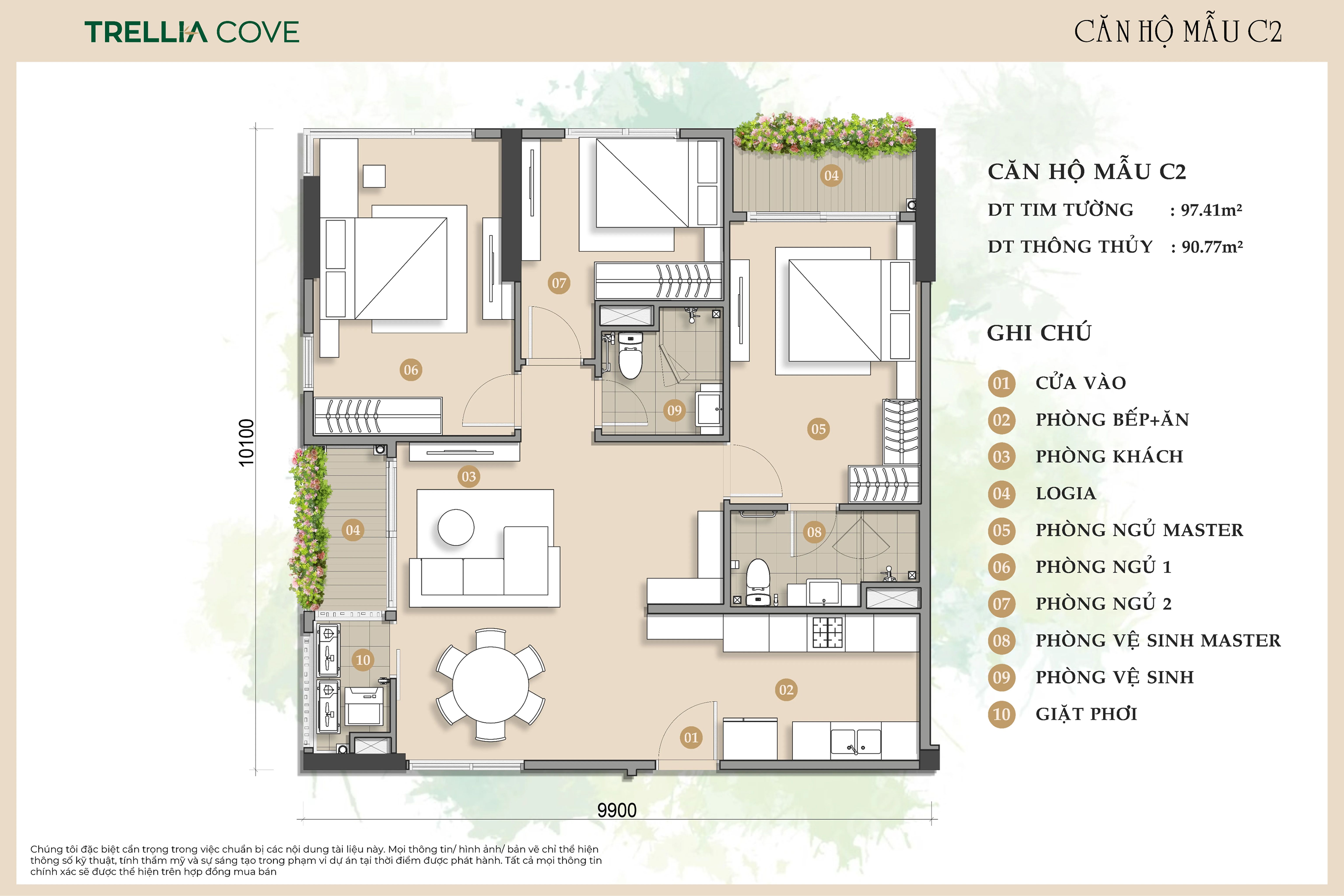 1. Layout căn hộ mẫu C2 – Căn 3 phòng ngủ diện tích lớn
