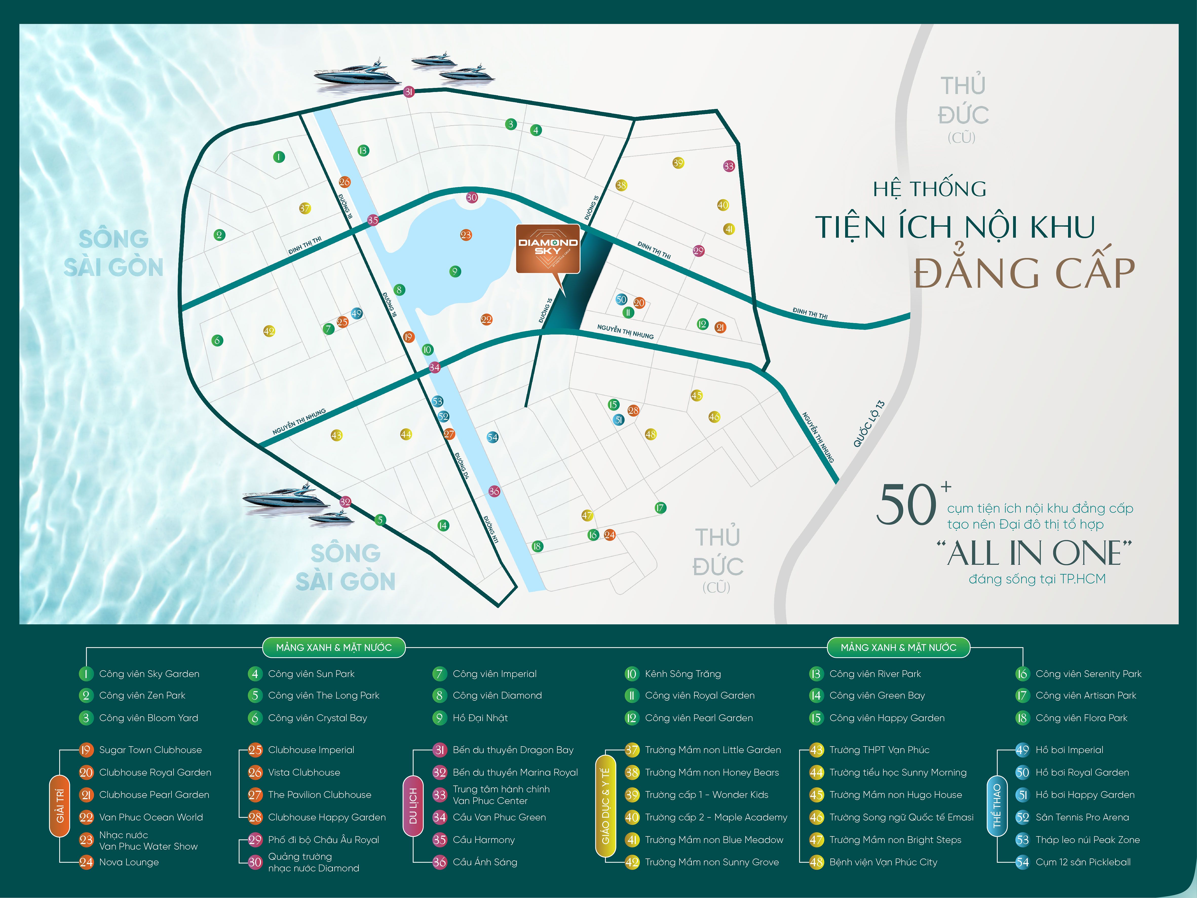 Kế thừa toàn bộ hệ sinh thái của Vạn Phúc City, cư dân Diamond Sky được tận hưởng hơn 50+ tiện ích “all-in-one” ngay trong nội khu: