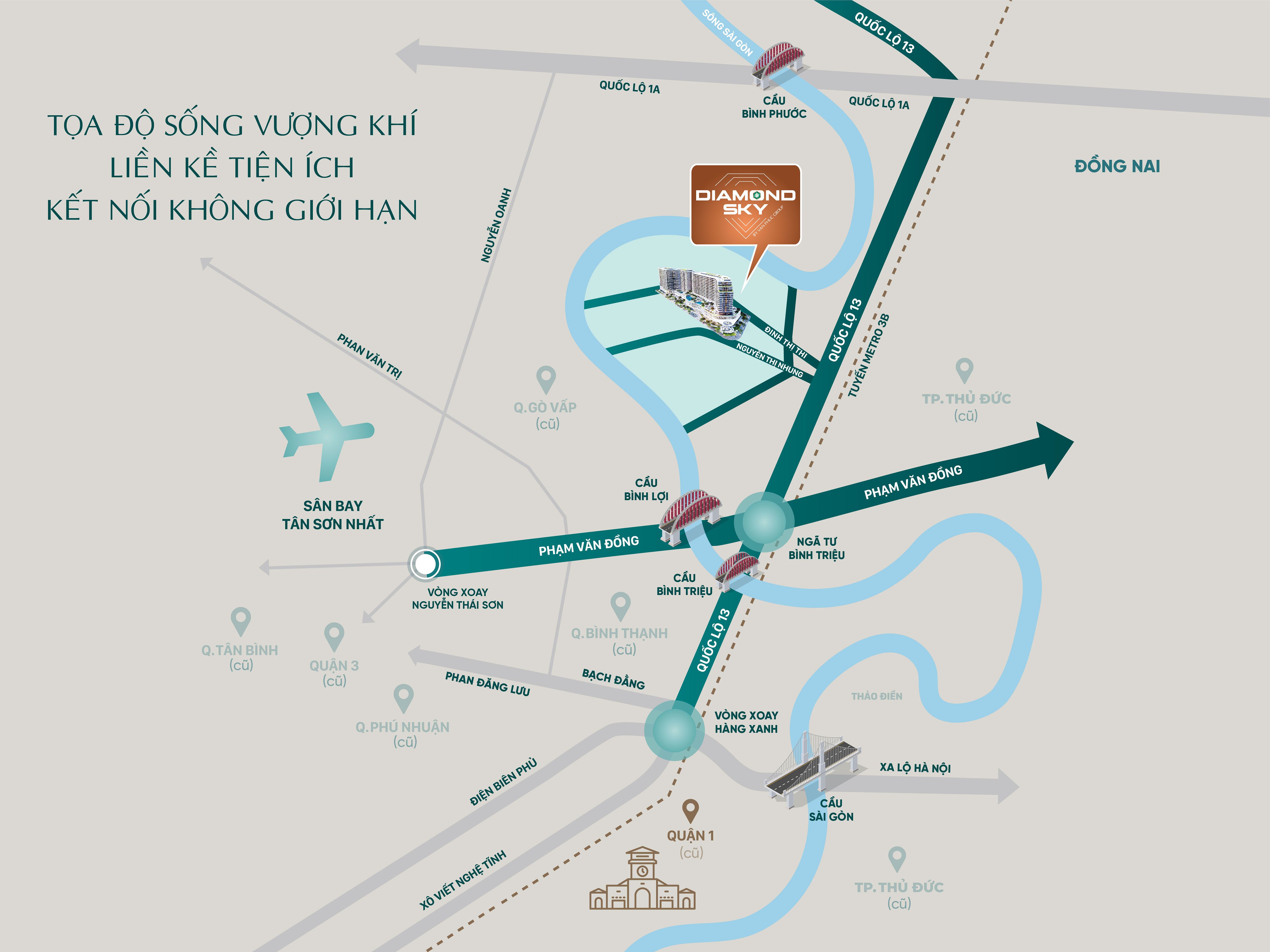 Diamond Sky sở hữu vị trí đắt giá ngay trung tâm khu đô thị Vạn Phúc City – nơi được mệnh danh là “thành phố thu nhỏ” phía Đông TP.HCM.