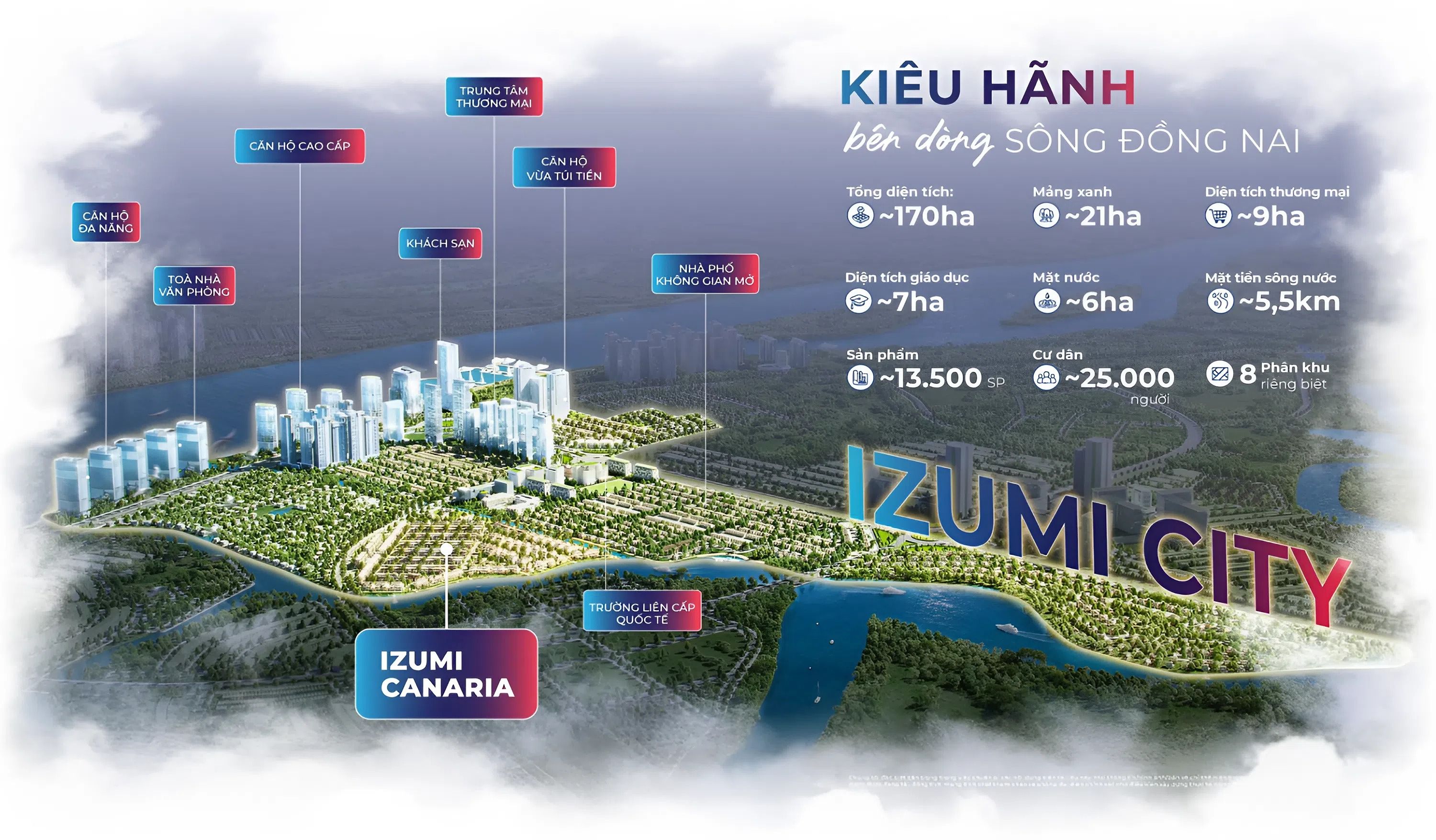 Giữa bức tranh tổng thể của đại đô thị tích hợp Izumi City quy mô gần 170ha, Izumi Canaria được định vị là phân khu thấp tầng cao cấp mang phong cách “phố liền vườn – đường cạnh sông”, nơi hội tụ đầy đủ giá trị sống xanh – tiện nghi – đầu tư bền vững tại cửa ngõ phía Đông TP.HCM.