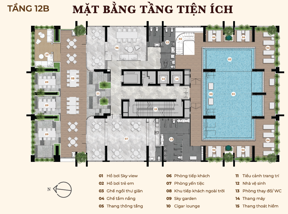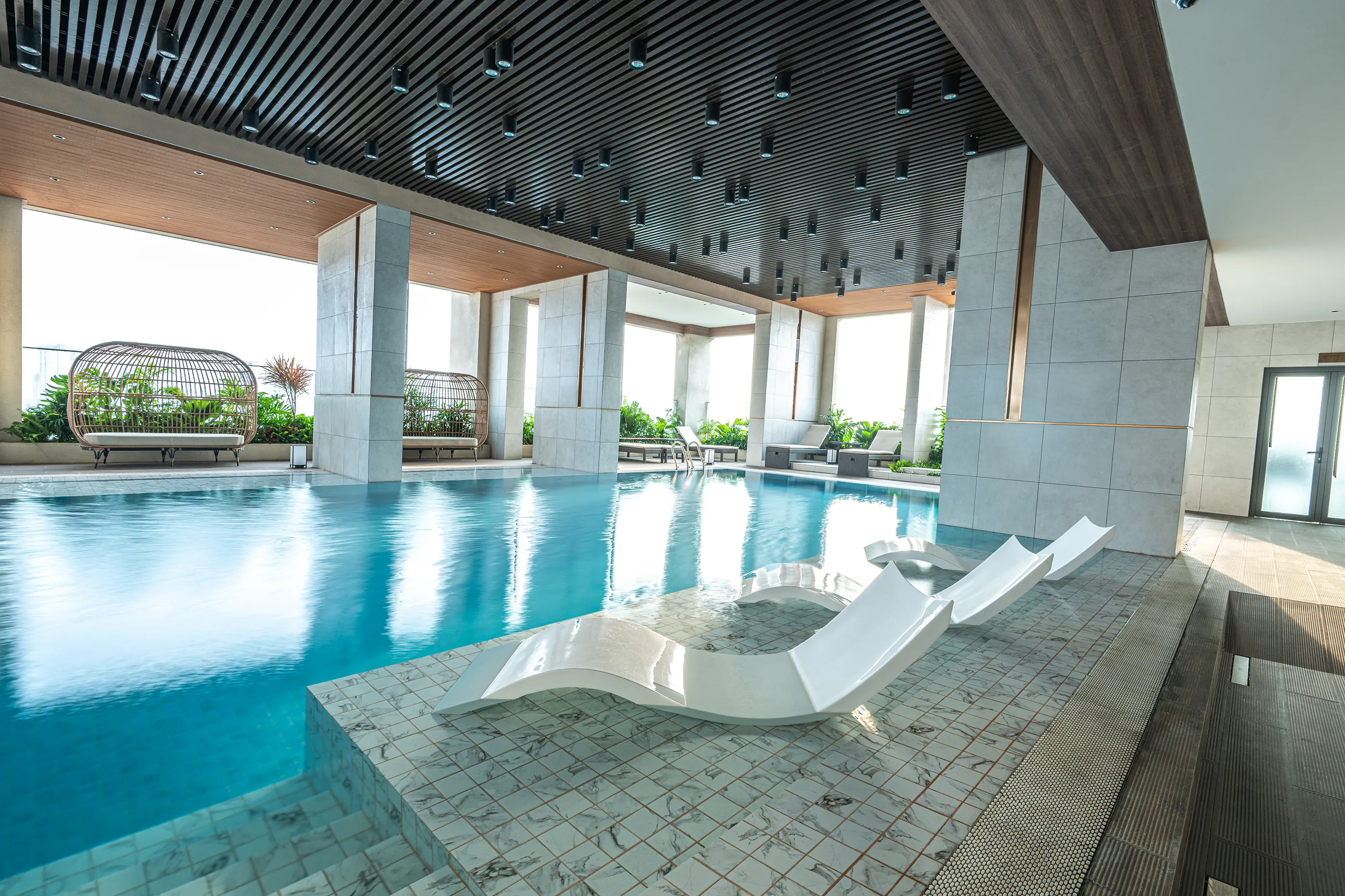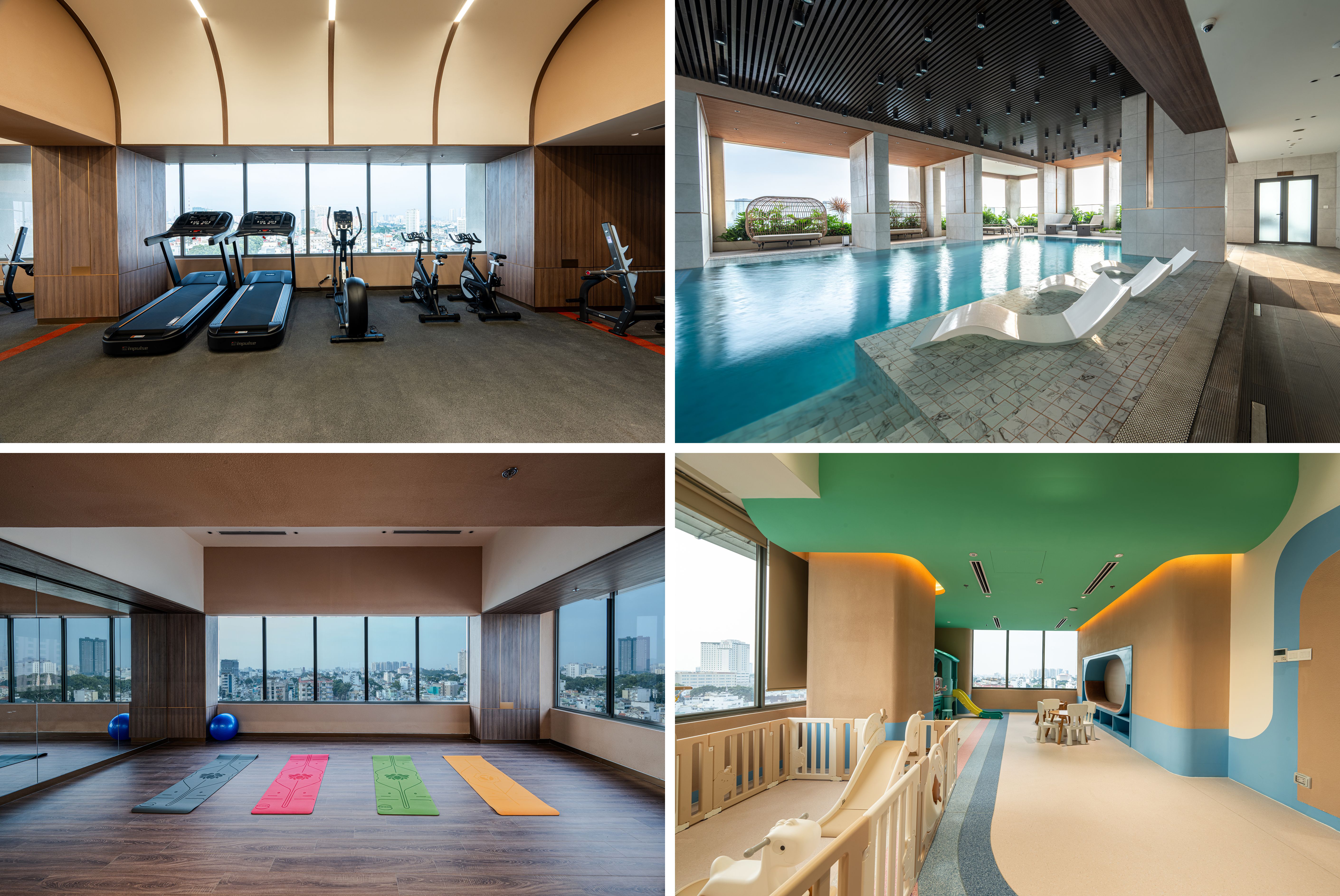 Các tiện ích được bố trí trên cao mang lại trải nghiệm nghỉ dưỡng và thư giãn ngay tại nơi ở.