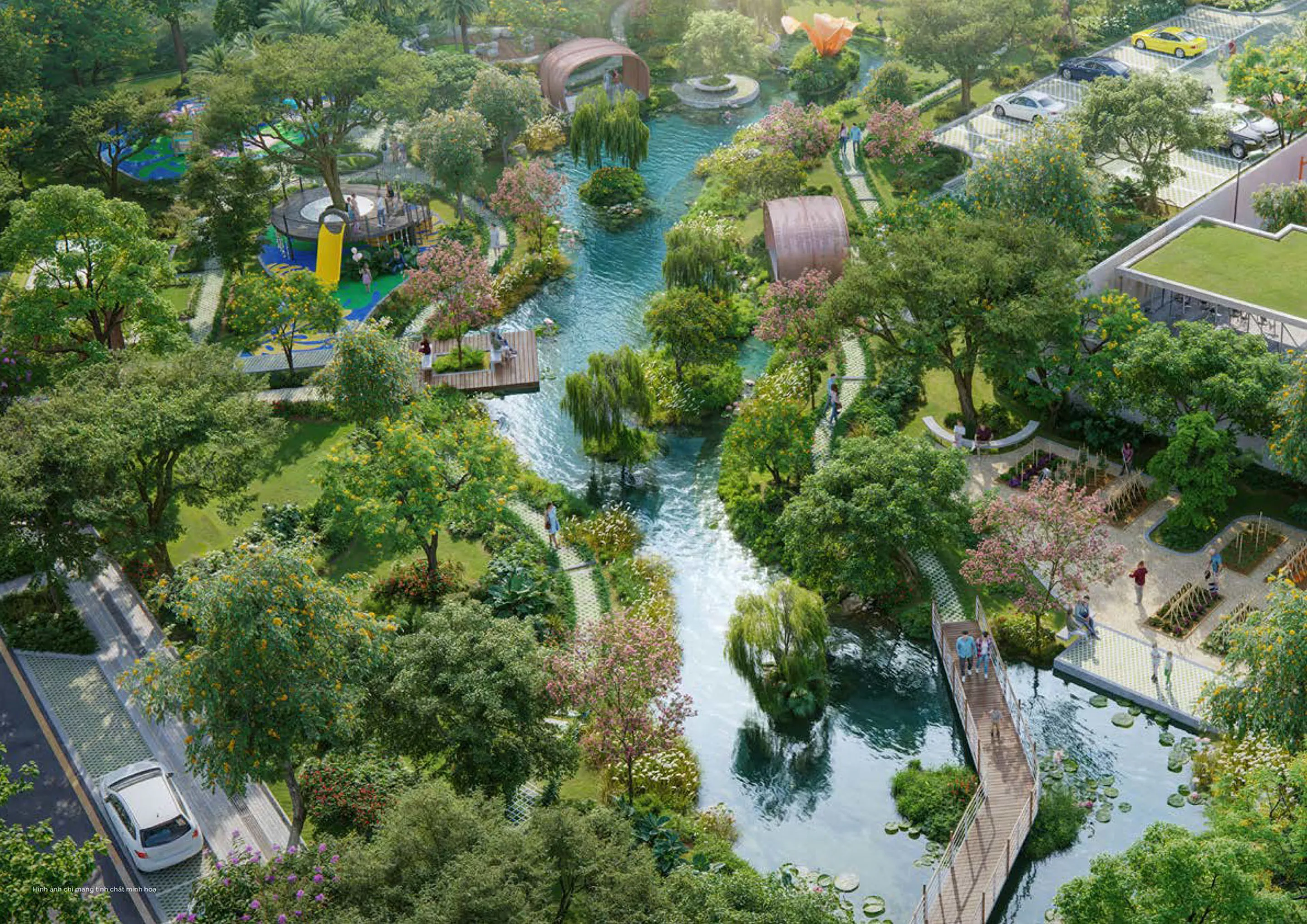 Không gian xanh chiếm phần lớn diện tích, mang lại cuộc sống thư thái, trong lành mỗi ngày.