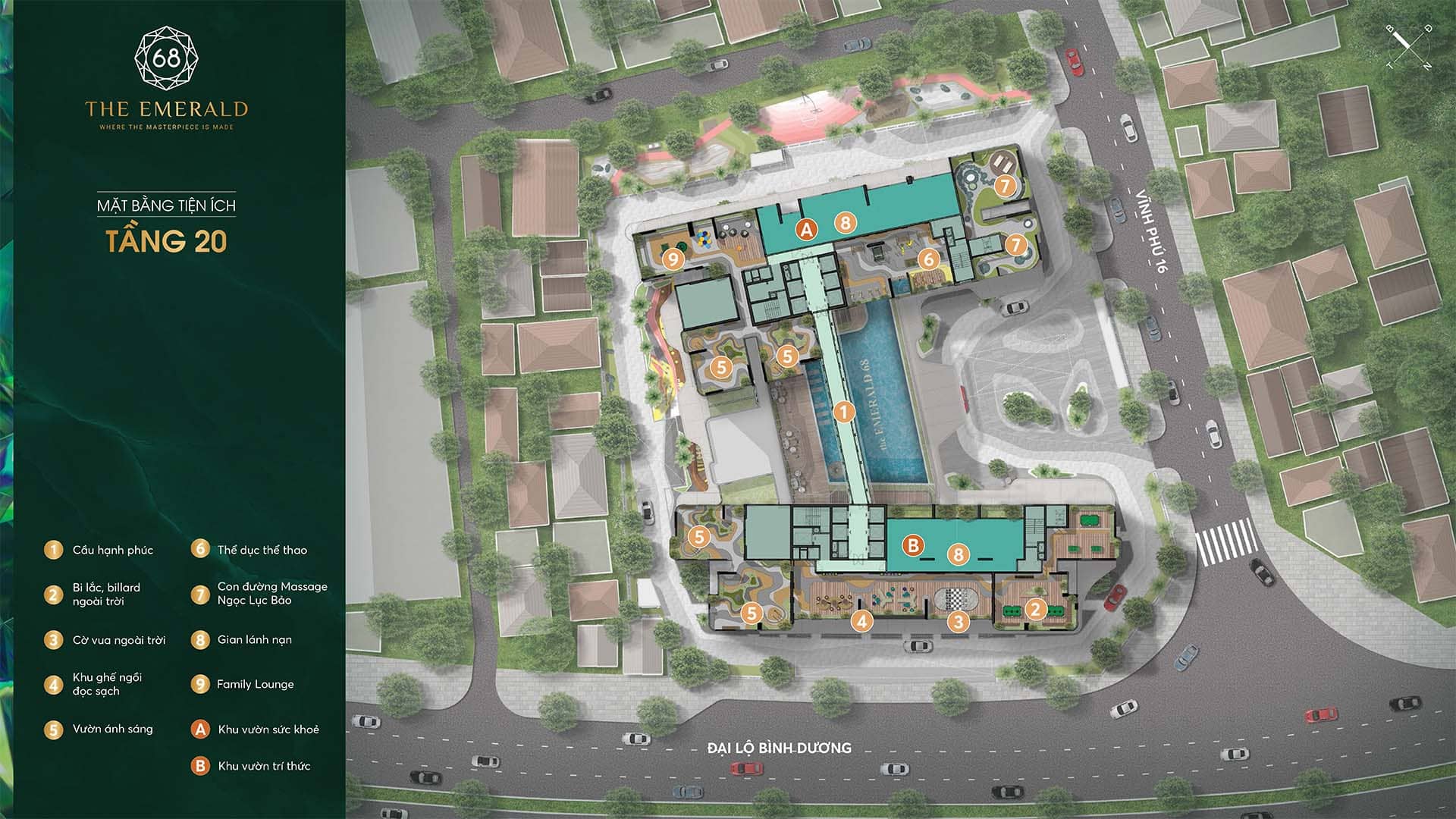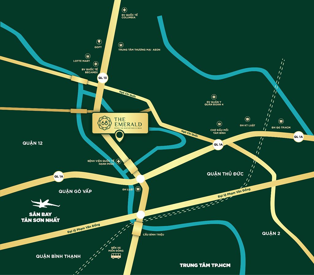 The Emerald 68 sở hữu vị trí vàng tại số 68 đường Vĩnh Phú 16, Quốc lộ 13, phường Vĩnh Phú – khu vực cửa ngõ kết nối TP.HCM với Bình Dương, Bình Phước.