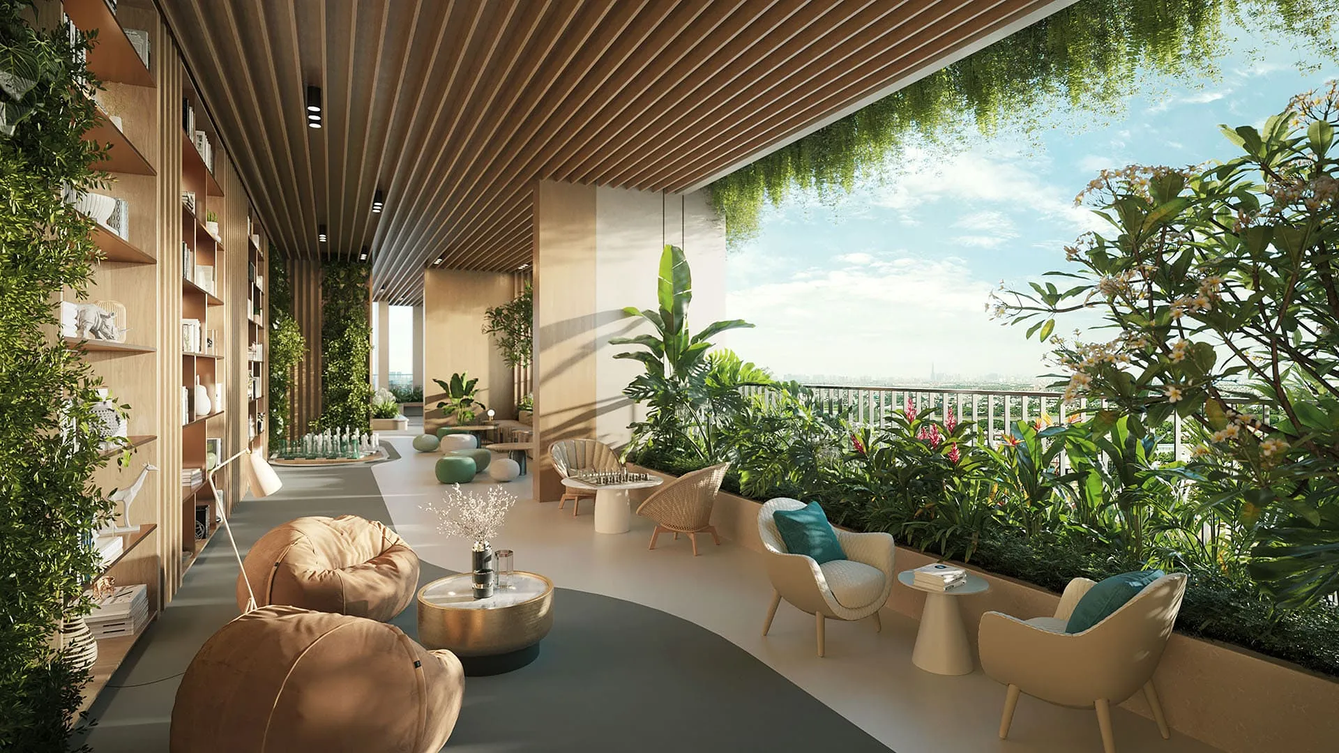 | Nghỉ dưỡng – thư giãn | Hồ bơi người lớn, hồ bơi trẻ em, khu ghế nghỉ bên hồ, khu vườn nghệ thuật trên không, các không gian lounge thư giãn |