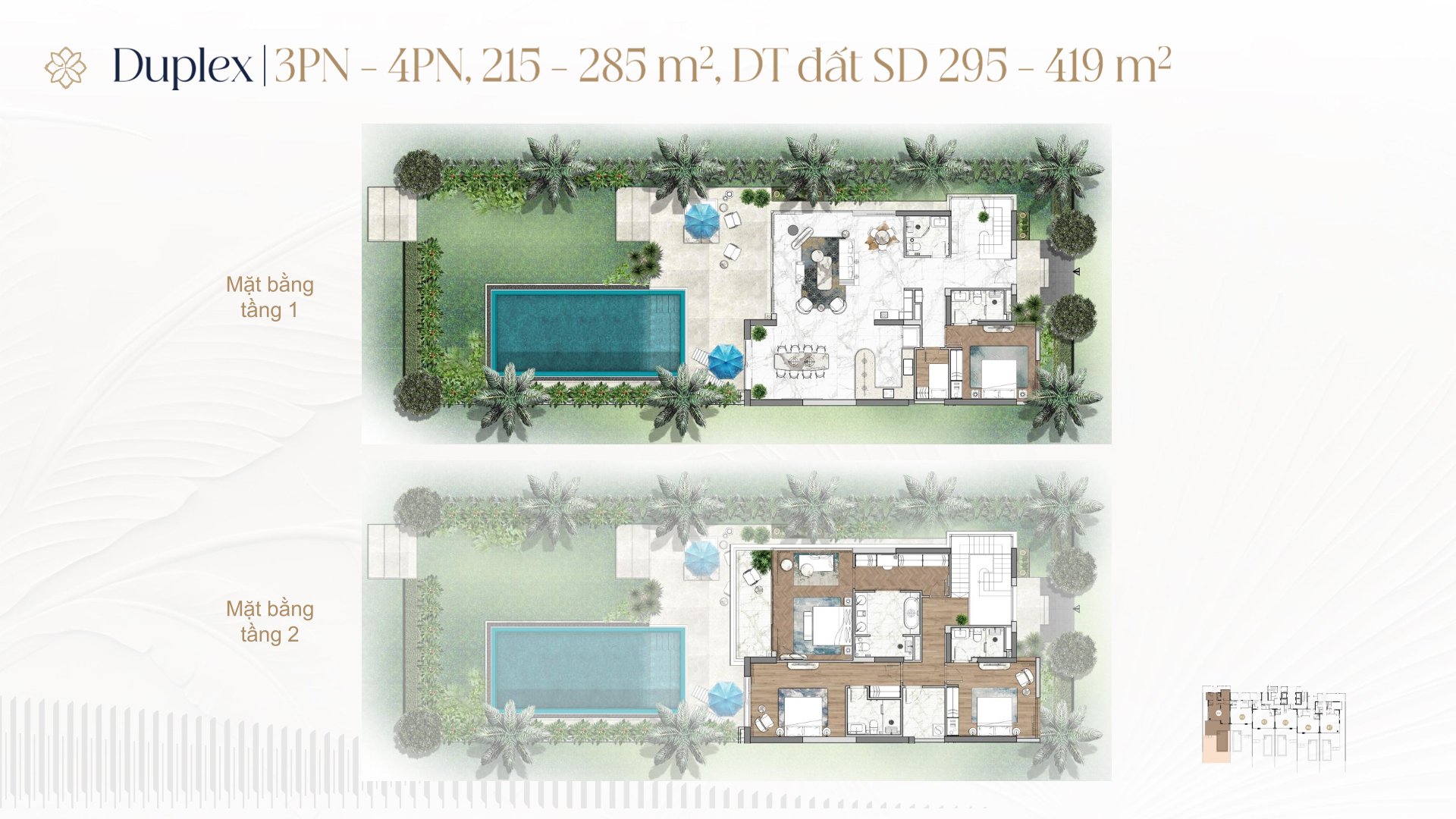 | Duplex | 06 căn – 3–4PN, diện tích 212 – 298 m² |