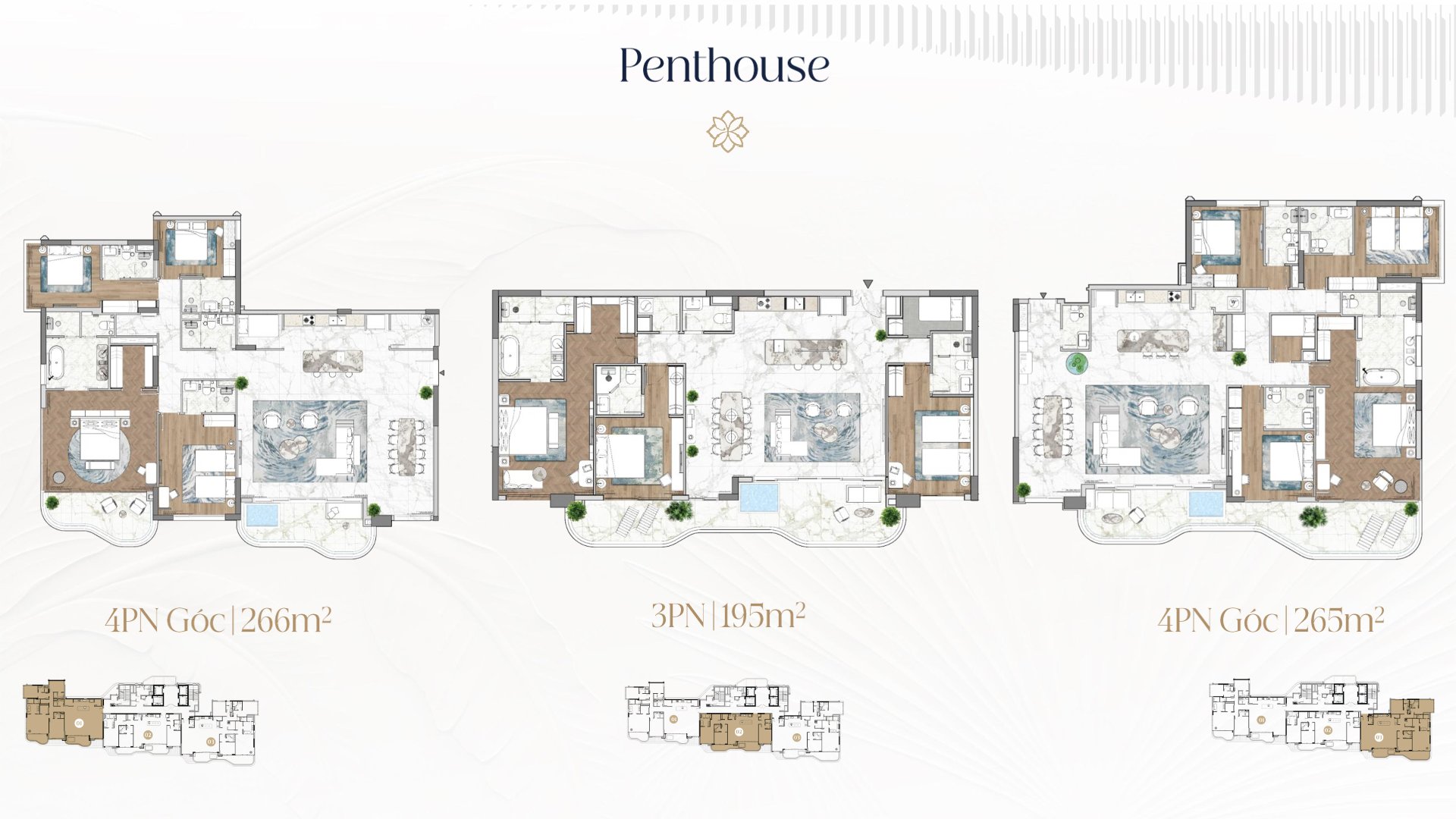 | 09 căn Penthouse: 3–4PN, 195 – 268 m² |