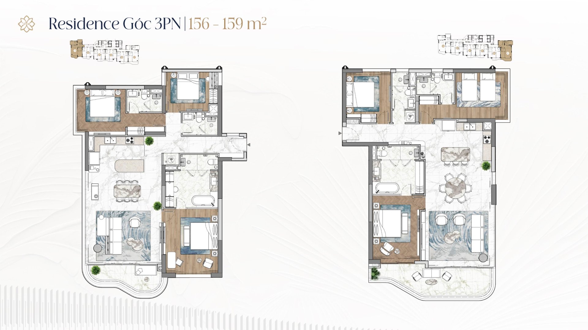 | Residence góc 3PN | 30 căn – diện tích 156 – 159 m² |