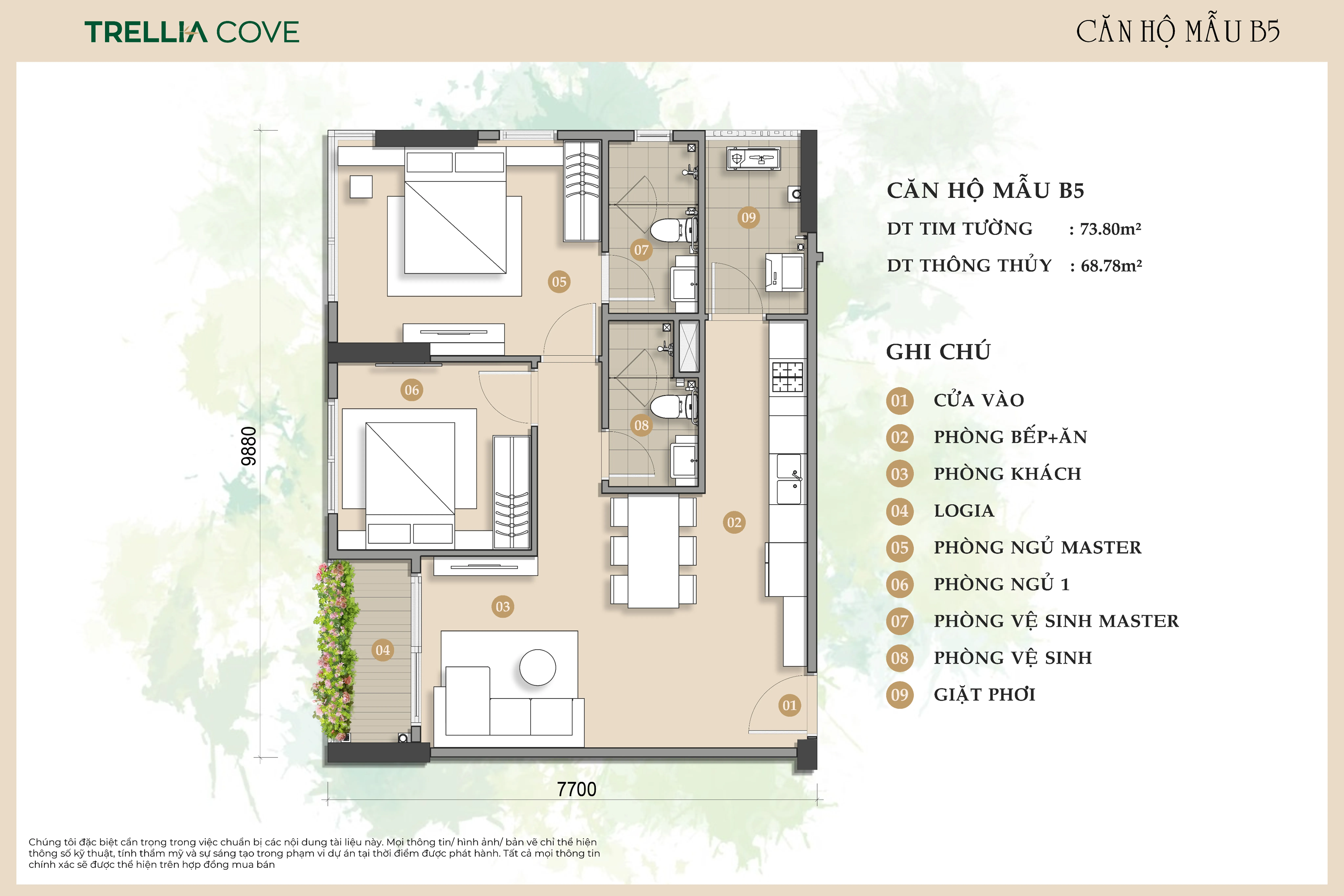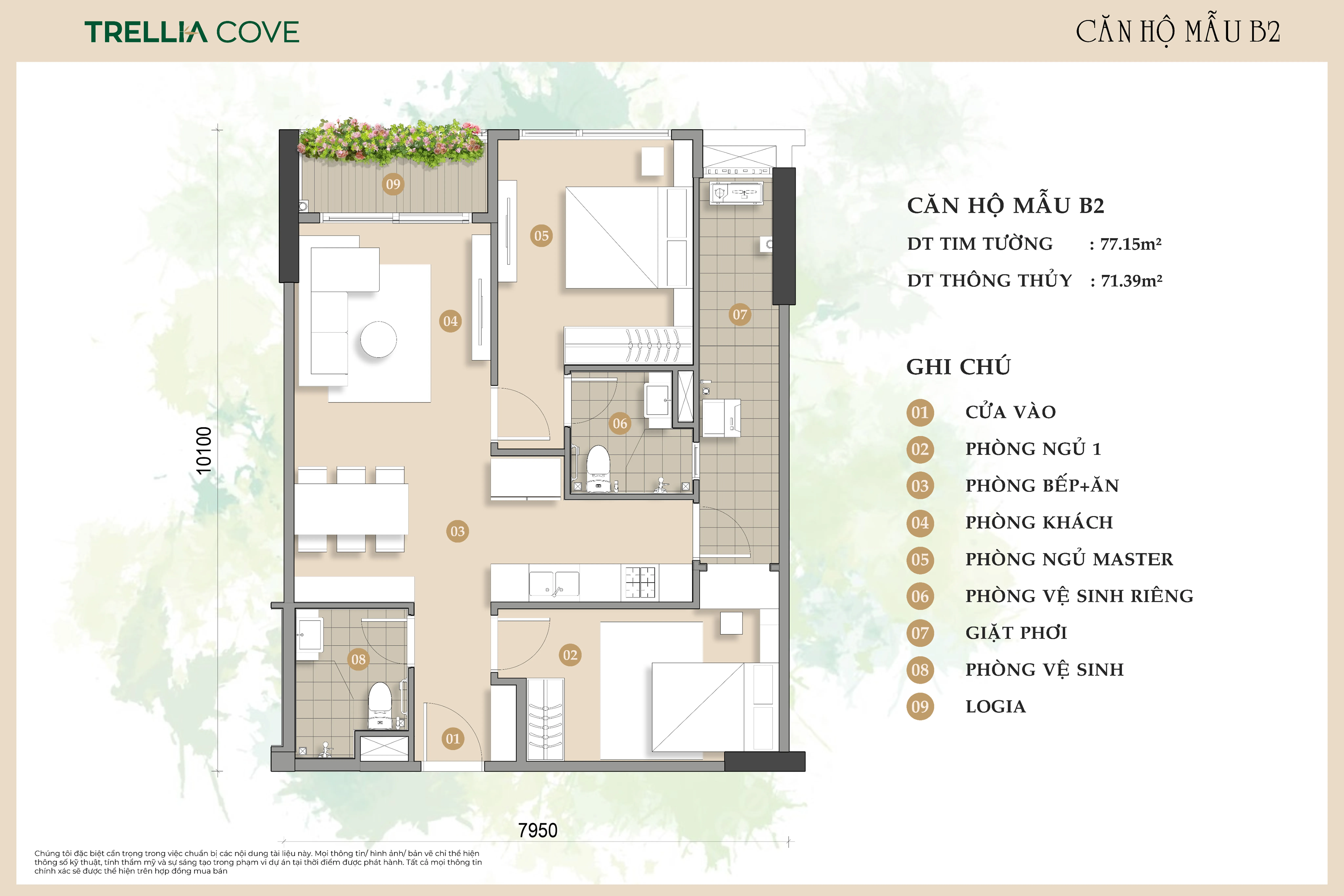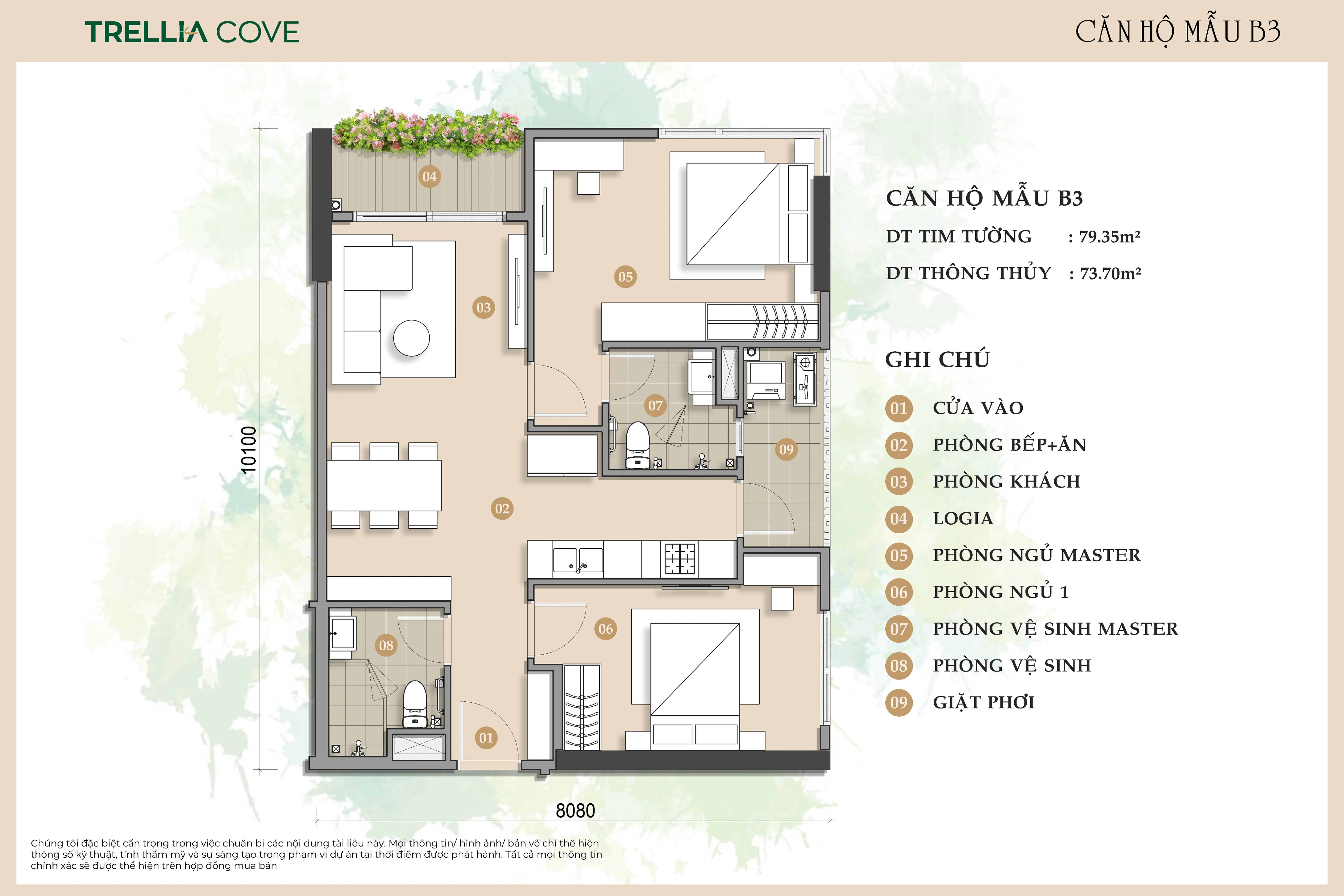 2PN + 2WC – 73,8–81,5m²: Dòng sản phẩm chiếm 60% nguồn cung – phù hợp nhất với nhu cầu thực của thị trường.