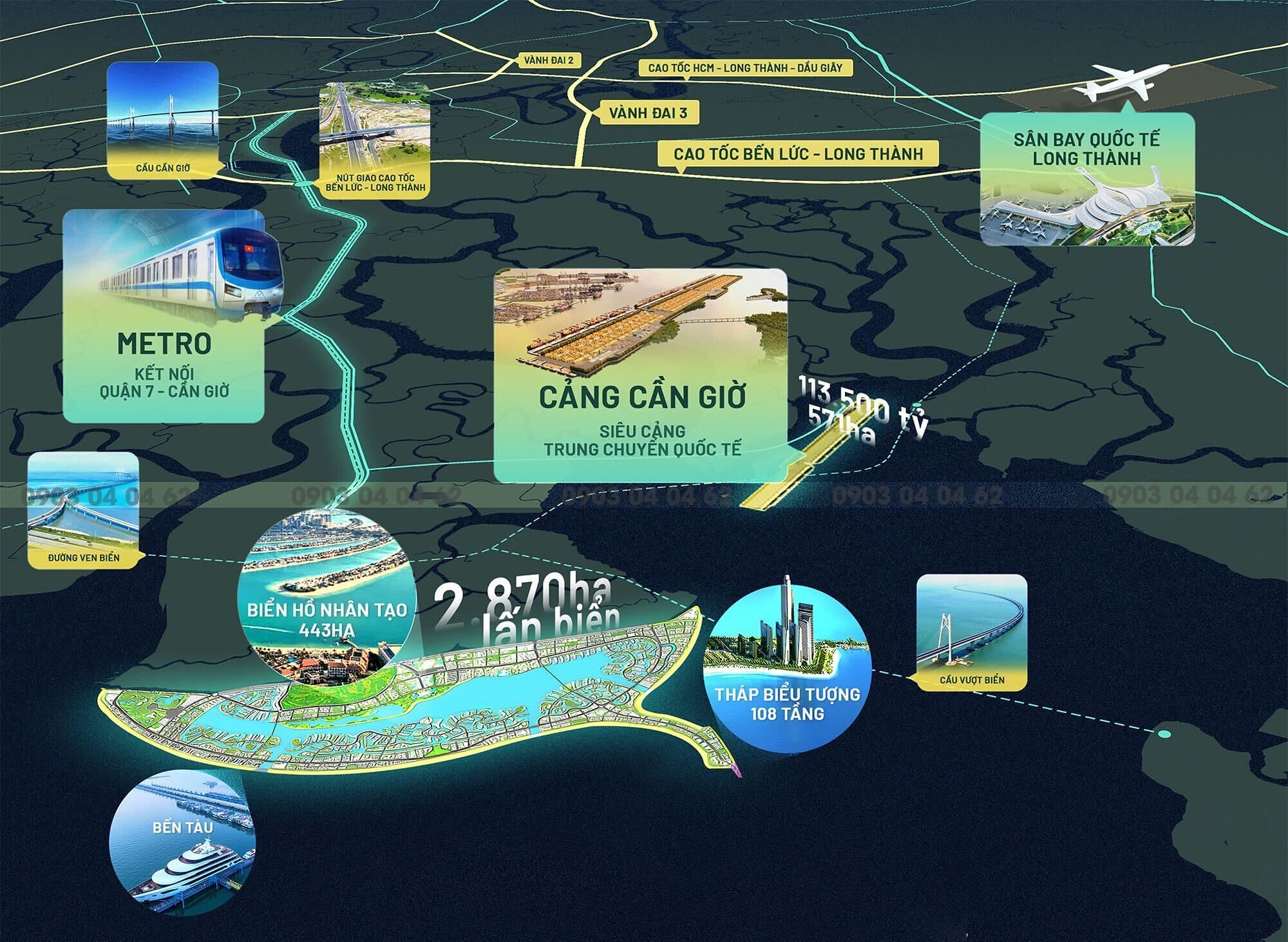 Tiện ích nổi bật: Tháp đôi 108 tầng – tòa cao nhất Việt Nam tương lai, trung tâm MICE, nhà hát & quảng trường quốc tế, chuỗi khách sạn hạng sang, phố ẩm thực & mua sắm quốc tế. 👉 Điểm nhấn: Trái tim toàn dự án – biểu tượng mới của TP.HCM và điểm đến kinh tế – văn hóa toàn cầu.